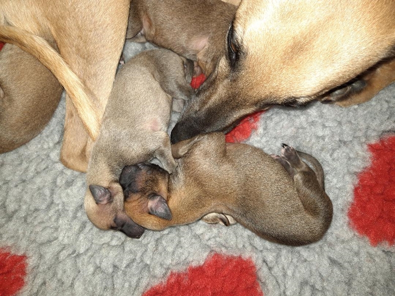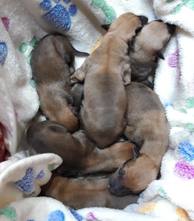 | Am 03.05.2019 sind die Welpen von Penny Lane und Fallout Boy gekommen, 4 Jungs und 2 Mädchen. |